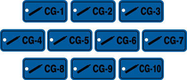 - Standard ID tags measure 1 1/2" x 3" with 3/16" Hole