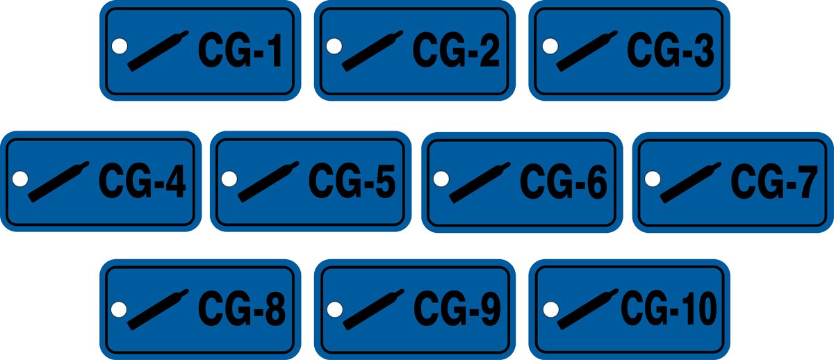 Accuform TDJ720VPR Plastic "Compressed Gas" Energy Source Standard Tag, 1 to 10 Series, 1-1/2" W x 3" L, Black on Blue (Pack of 10)