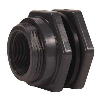 ' Bulkhead Fitting, 2 In Thread Size, Required Hole Size 3-1/4 In., Connection FNPT, Temp. Range 40 to 140 Degrees F, Gasket Material EPDM, Length 3-1/4 In, Material PVC, Max. Pressure 150 PSI '