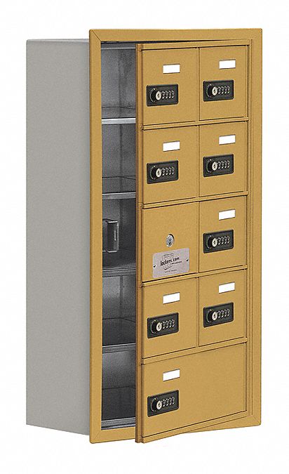 Salsbury Industries 19158-09GRC Cell Phone-Access Panel-5 Unit Recessed Mounted-Resettable Combo Locks with 8-Inch Diameter Compartments, Gold