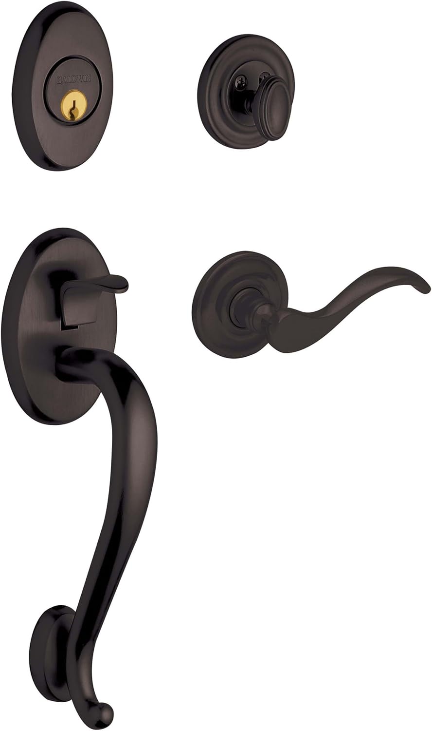 Baldwin 85315.RENT Features: -Sectional trim single cylinder handle set. -Logan collection. -Available in: -Lifetime polished brass finish. -Oil rubbed bronze finish. -Venetian bronze finish. -Satin nickel finish. -Distressed venetian bronze finish. . -Universal backset latch and deadbolt. -Right handling. -Fits 2.375" or 2.75" backsets. -6.5" Handle CTC. -For use on 1.75" thick doors. -5 Pin cylinder. -Wave lever. -Overall dimensions: 20.3" H x 4.8" W x 4.5" D. For more information please view the sheet(s) seen below: Handle Set Installation Guide 1 Handle Set Installation Guide 2 Installation Guide 3 Installation Guide 4 Finish: Satin Black