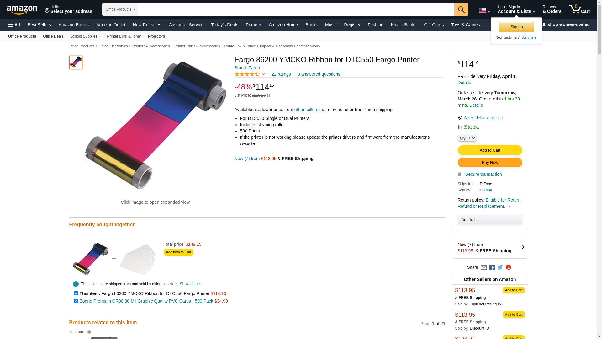 Fargo 86200 YMCKO Ribbon for DTC550 Fargo Printer