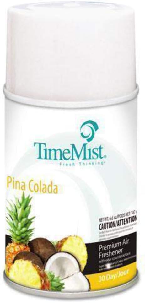 Complex high quality fragrance with essential oils and dual odor counteracts ensuring 30 day long lasting experience. For use with TimeMist Metered Aerosol Dispensers (sold separately). Scent: Pia Colada; Physical Form: Liquid; Application: Automatic Odor Control; Capacity (Volume): 6.6 oz.