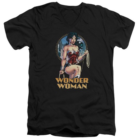 Trevco Jla-City Warrior Short Sleeve Adult V-Neck 30-1 Tee, Black - 2X
