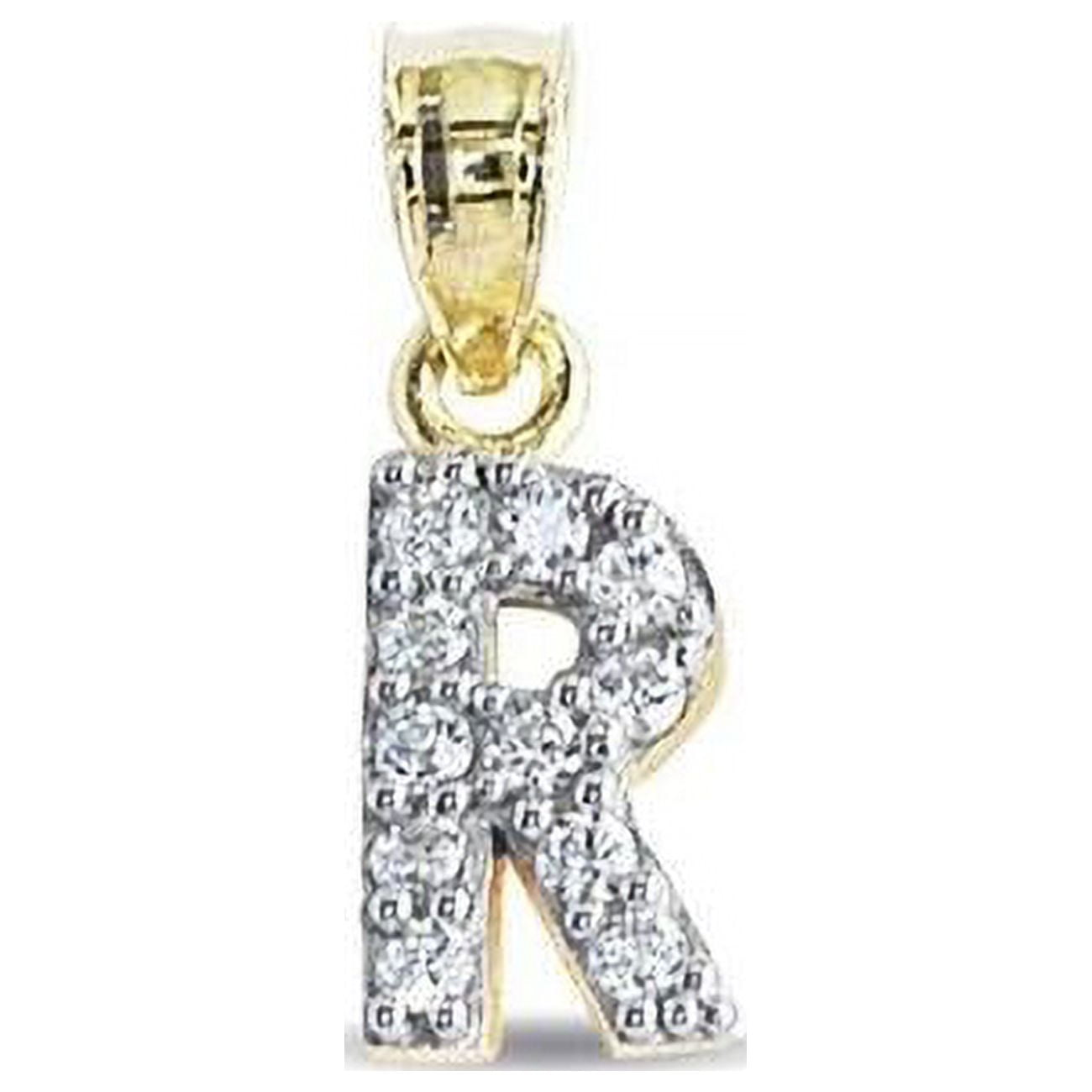 Precious Stars PT-2123-R 14K Yellow Gold Cubic Zirconia Initial Letter R Pendant