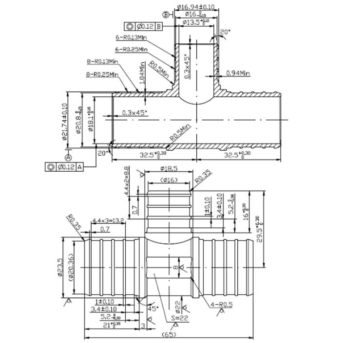 1 x 1 x 3/4 in. Brass PEX Crimp Tee