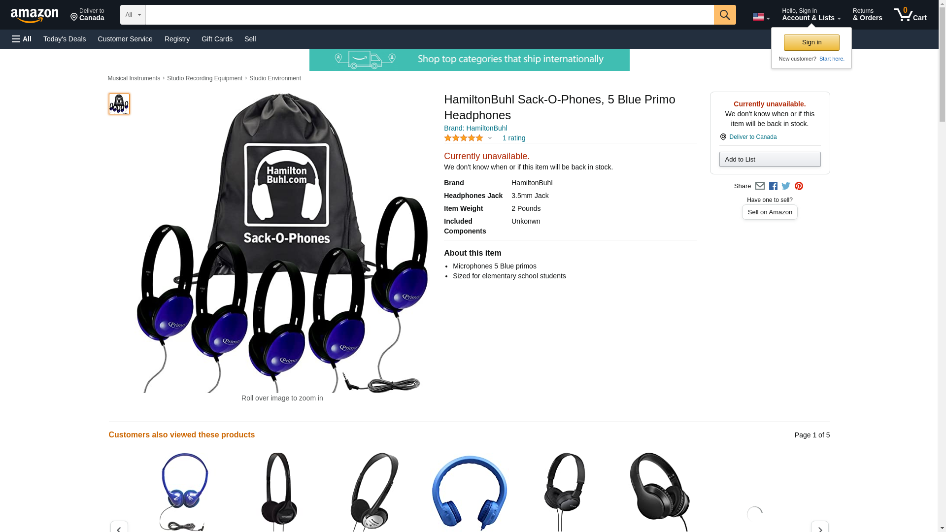 HamiltonBuhl Sack-O-Phones, 5 Blue Primo Headphones