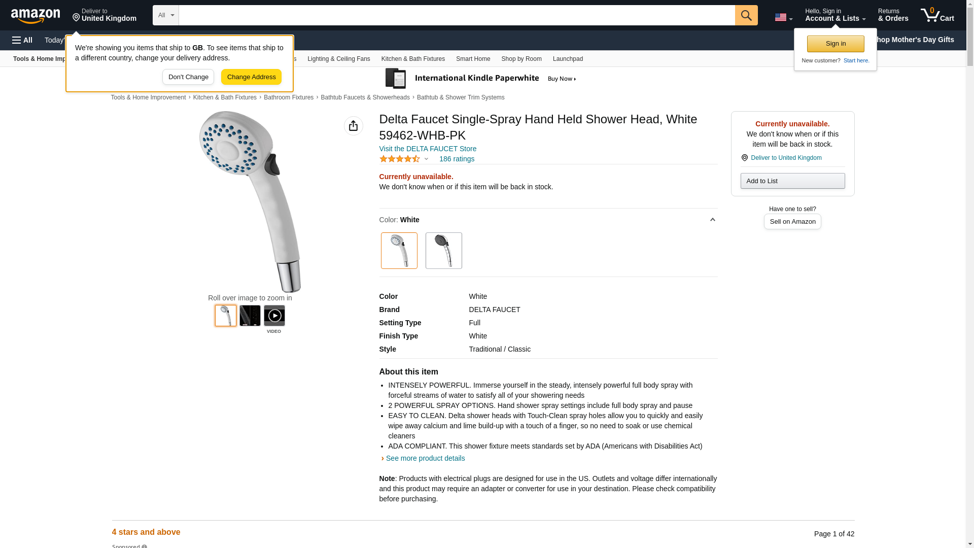 Delta Faucet Single-Spray Hand Held Shower Head, White 59462-WHB-PK, 0.5