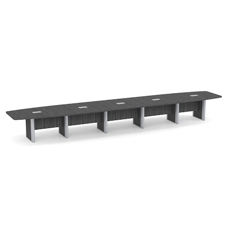 OfficeSource 22' Long Boat-Shaped Conference Table with Elliptical Base, Coastal Gray Wood Finish, Durable and Structurally Sound