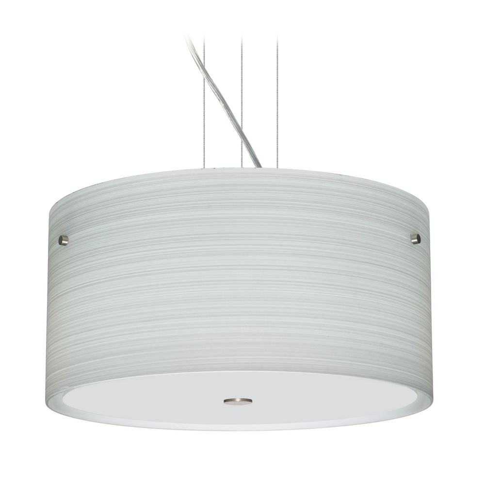 Besa Lighting 1KV-4008KR-SN 3X100W A19 Tamburo 16V2 Pendant with Chalk Glass, Satin Nickel Finish