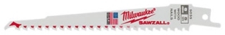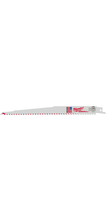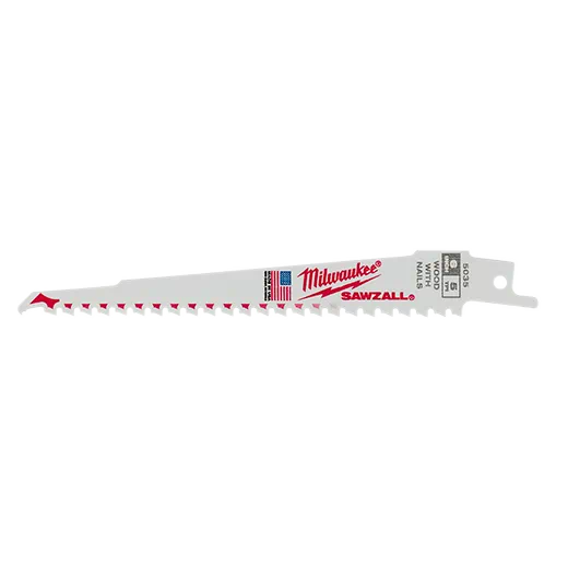 Milwaukee 9" 5 TPI Sawzall Blades Milwaukee wood cutting Sawzall blades have been engineered to deliver the fastest cuts, longest life, greatest tooth durability and quickest plunge cuts of any wood blade on the market. NAIL GUARD . Ordinary teeth deliver either speed or durability. NAIL GUARD solves this trade-off with an aggressive 5 TPI pattern for faster cuts and a unique design that protects against tooth fracture. FANG TIP . Ordinary tips bounce or skate on the work piece. FANG TIP bites into the wood on first contact. Matrix II bi-metal teeth for greater durability.