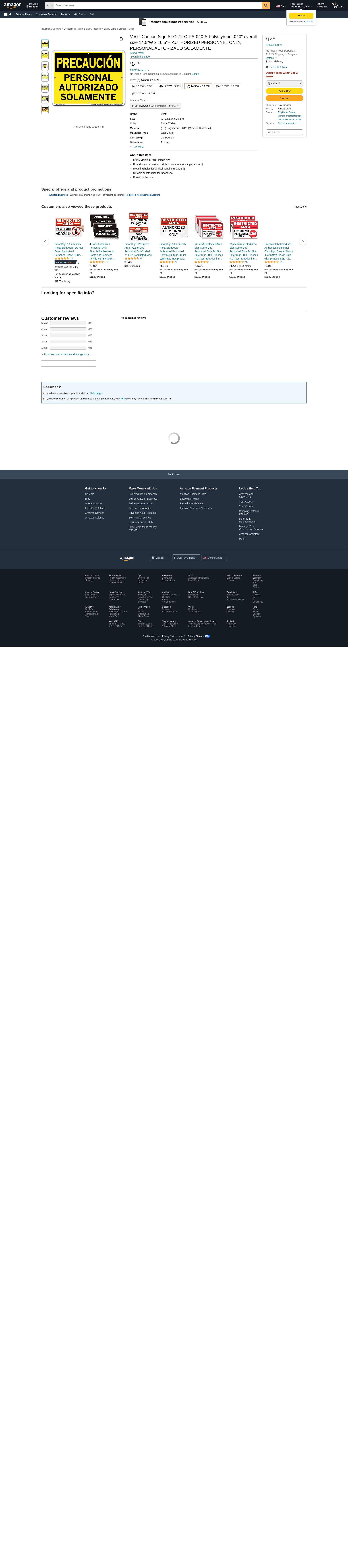 Vestil Caution Sign SI-C-72-C-PS-040-S Polystyrene .040" overall size 14.5"W x 10.5"H AUTHORIZED PERSONNEL ONLY, PERSONAL AUTORIZADO SOLAMENTE