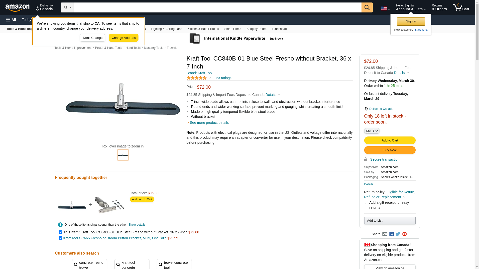 Kraft Tool 36" x 7" Blue Steel Fresno w/o Bracket CC840B-01. ✅Kraft Tool authorized distributor ✅. ☎ +1 (838) 222-2023 Mon-Fri 8:00 AM - 5:00 PM ET or order online 24/7