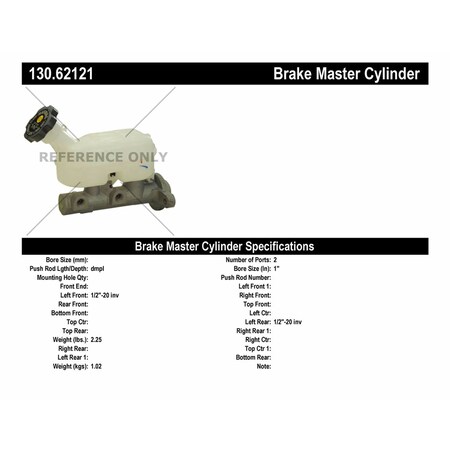 - CENTRIC PARTS 130.62121 MASTER CYLINDER
