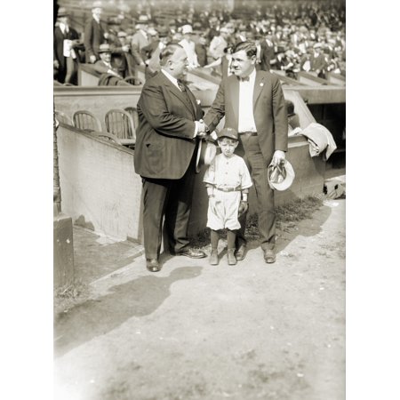 George H Ruth (1895-1948) Nknown As Babe Ruth American Professional Baseball Player For The New York Yankees Ruth (Right) With Bill Edwards And A Young Boy 1924 Poster Print by Granger Collection