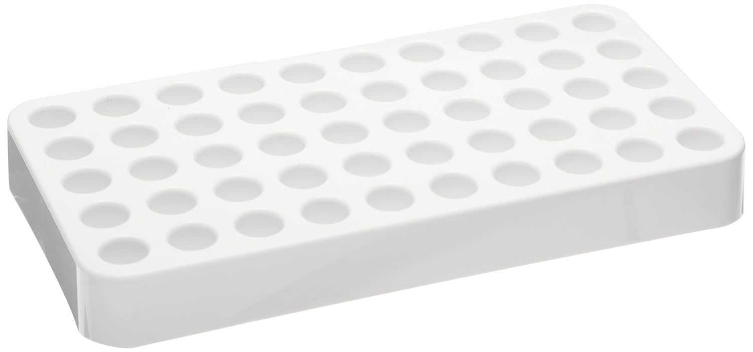 For positive vial identification numbers and letters are molded into each holder's upper surface. Designed to hold 1.2, 2.0 and 5.0 mL sizes of Nalgene cryogenic vials. Autoclavable; solid construction and rubber feet make it stable on the bench top. Stackable when empty to save space. 50 Place Holders measure 197 x 102 x 28 mm high; 25 Place Holders measure 197 x 102 x 22 mm high.
