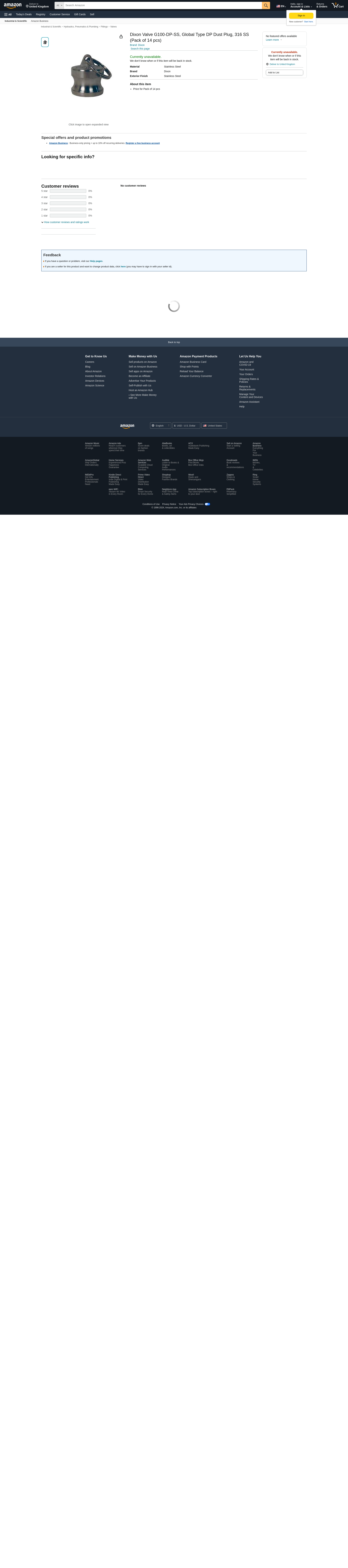 Dixon Valve G100-DP-SS, Global Type DP Dust Plug, 316 SS (Pack of 14 pcs)