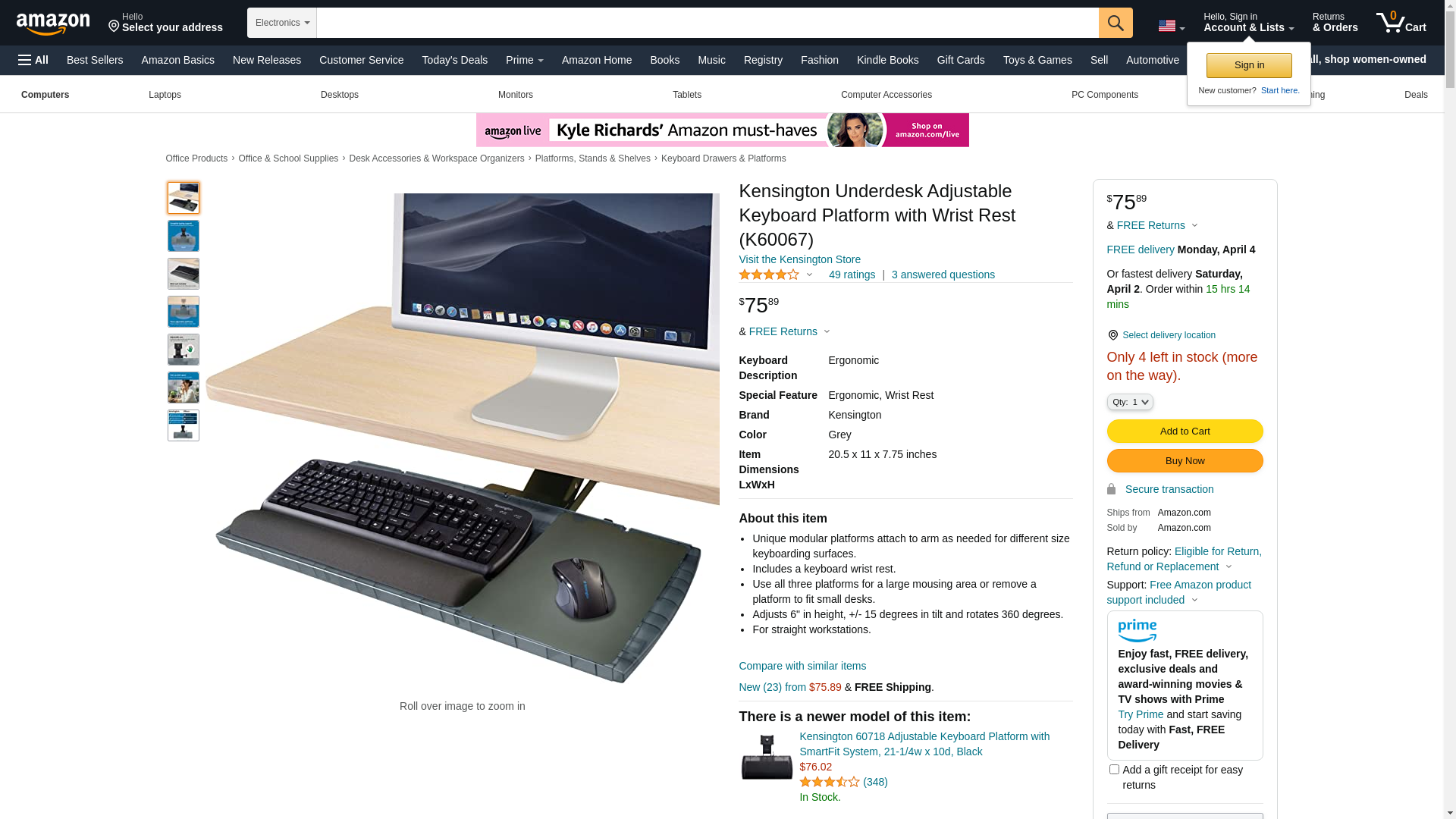 Kensington Underdesk Adjustable Keyboard Platform with Wrist Rest (K60067). Unique modular platforms attach to arm as...