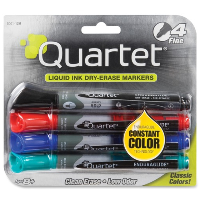 Quartet Enduraglide Dry-Erase Marker, Fine Point, Assorted Colors, Pack Of 4