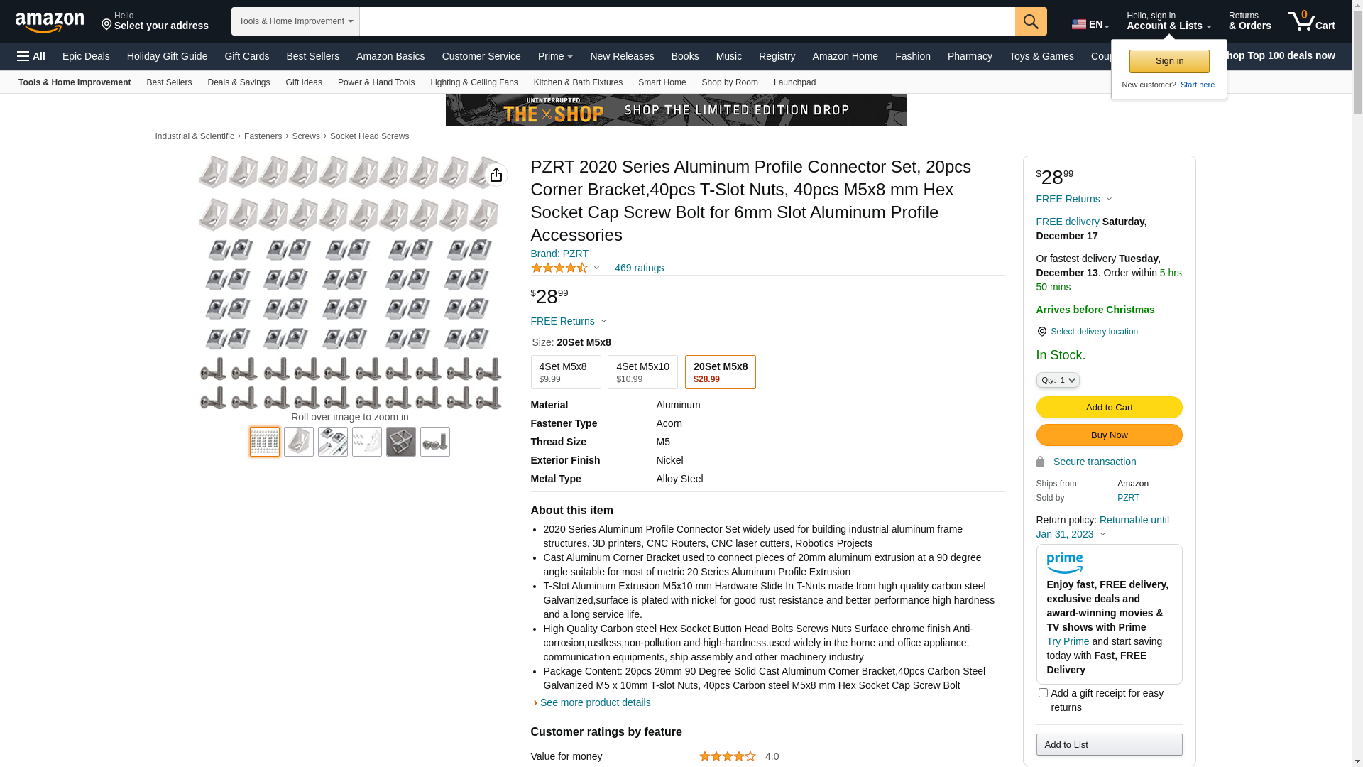 <p><b>PZRT 2020 Series Aluminum Profile Connector Set Aluminum Profile Accessories Widely used for building 3D printers, 3D carvers, CNC routers, CNC laser cutters, CNC plasma cutters, robotics projects, machine guards, workstations, etc.</b></p> <p>Compatible with all 20mm-based aluminum extrusion,They are simple to used for connection between aluminum profiles,and convenient to connect aluminum profiles to other parts.</p> <p><b>T-Slot Aluminum Extrusion 20 Series M5 Hardware Slide In T-Nut:</b><br> Thread Diameter : 5mm/0.2",Slot Width : 6mm (used on profiles with 6mm slot)<br> Total Size : 11 x 10 x 5mm/0.43" x 0.4" x 0.2"(L*W*T)</p> <p><b>2020 90 Angle Corner Bracket Joint Aluminum Profile Extrusion: </b><br> Total Size : 20 x 20mm 0.78" x 0.78" (L*W)</p> <p><b>Carbon steel M5x8 mm Hex Socket Cap Screw Bolt :</b><br> Thread Size: M5x10mm/0.2"x0.4"(D*L)<br> Total Length: 13mm/0.51"; <br> Head Size: (Approx)9x3mm/0.35"x0.12"(D*T)<br> Hex Socket Width: (Approx)3mm/0.12"; <br> Hex Socket Depth: (Approx)2mm/0.08"<br> </p> <p><b>Package Content: <br> 20pcs 20mm 90 Degree Solid Cast Aluminum Corner Bracket,<br> 40pcs Carbon Steel Galvanized T-slot Nuts, <br> 40pcs Carbon steel M5x8 mm Hex Socket Cap Screw Bolt </b></p>