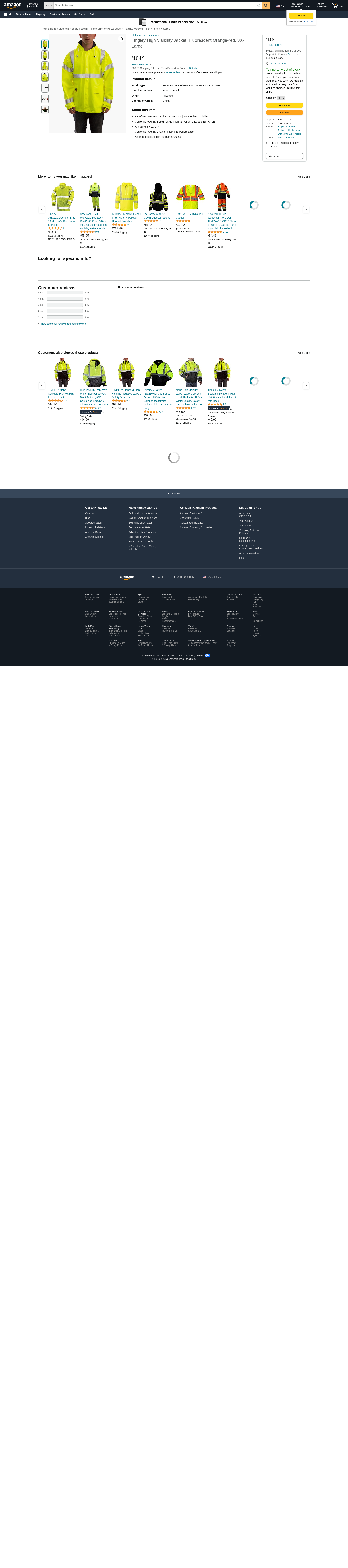 Tingley High Visibility Jacket, Fluorescent Orange-red, 3X-Large