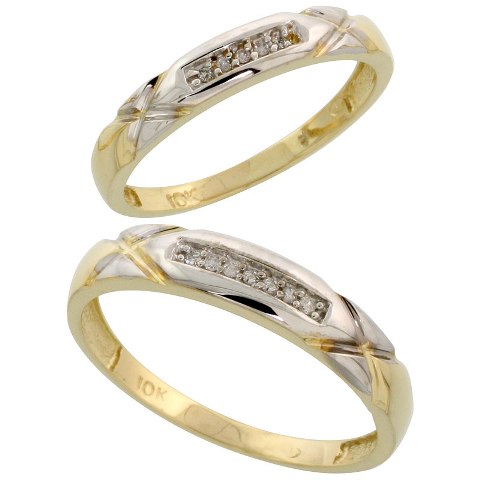 World Jewels 10k Yellow Gold Diamond Wedding Ring Set, Size 6.5