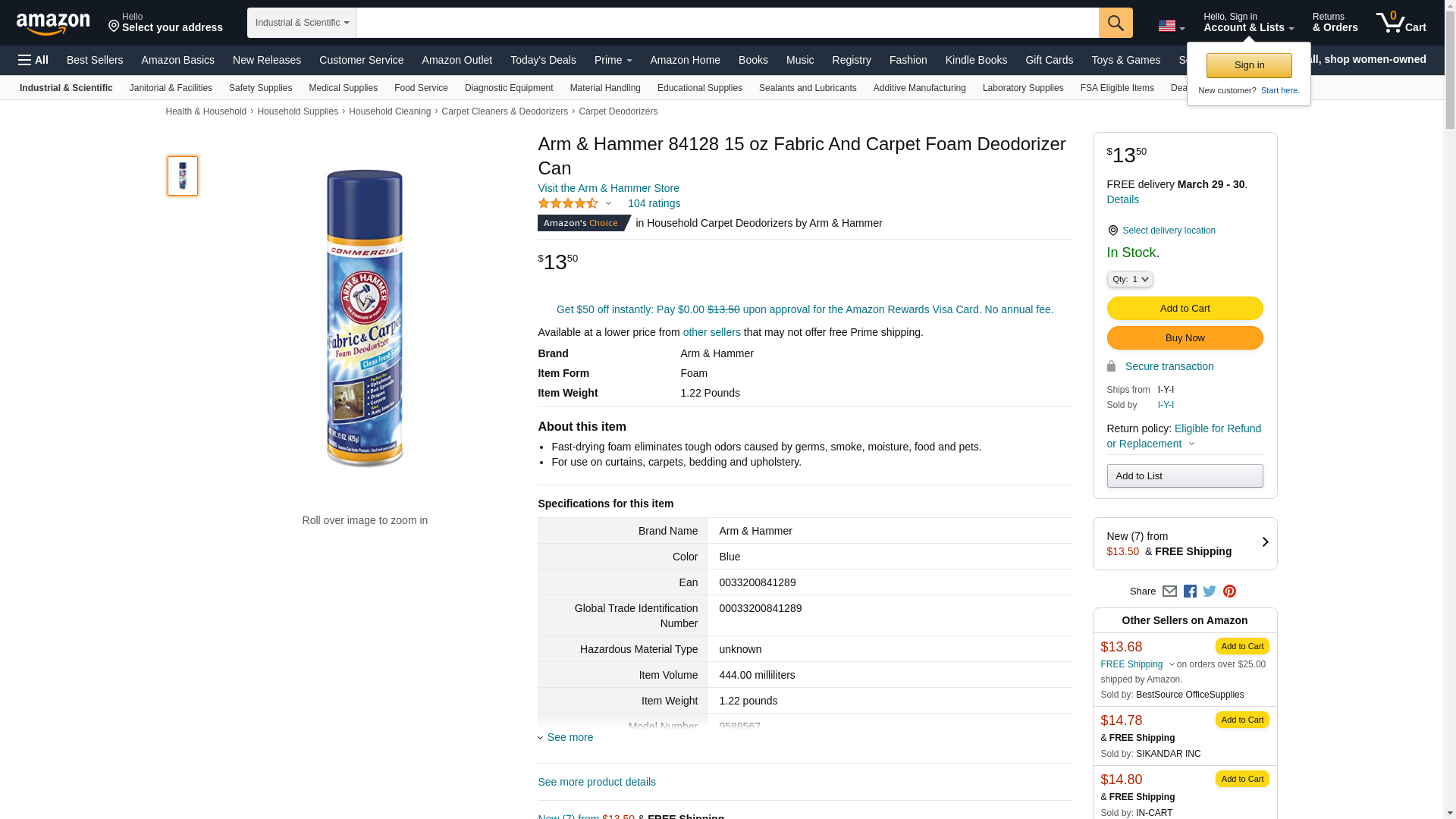 Arm & Hammer 84128 15 oz Fabric And Carpet Foam Deodorizer Can