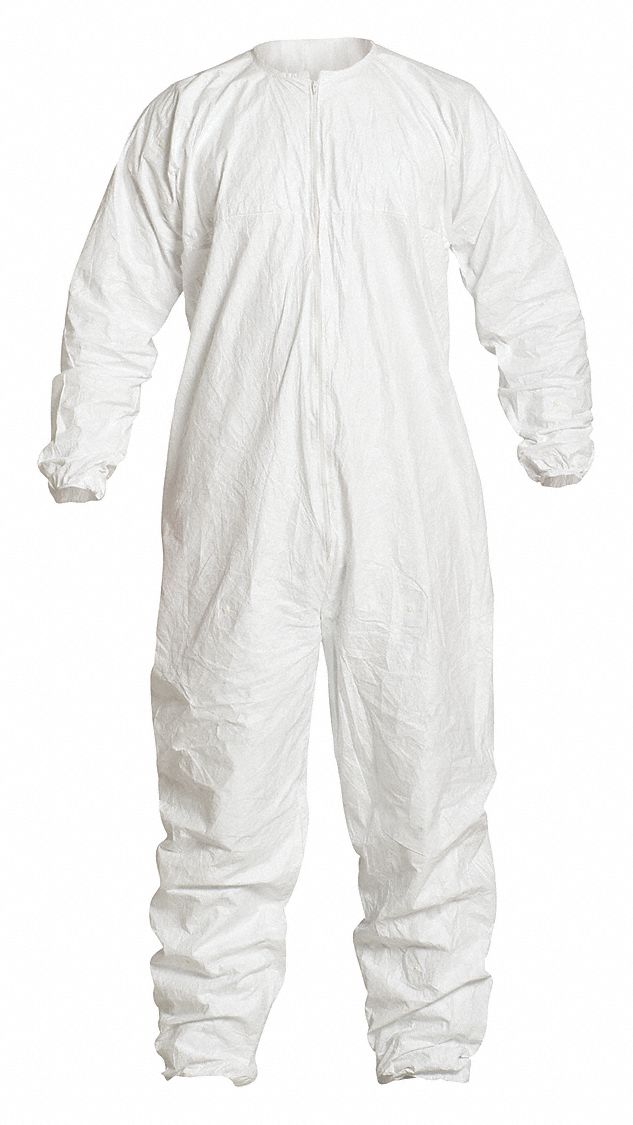 Coveralls are constructed of Tyvek flashspun polyolefin protective material that provides an effective barrier to dry particles, microorganisms, and nonhazardous liquids. -Dolman sleeves -Elastic wrist and ankle Coveralls feature bound seams, bound neck, dolman sleeves, elastic wrists and ankles, zipper closure, and snaps for aseptic donning. White.Clean-processed, sterile garments are processed to minimize particle shedding. Garments are gamma sterilized to a Sterility Assurance Level (SAL) of 10. Individually packaged options are packed in an ISO Class 4 cleanroom.