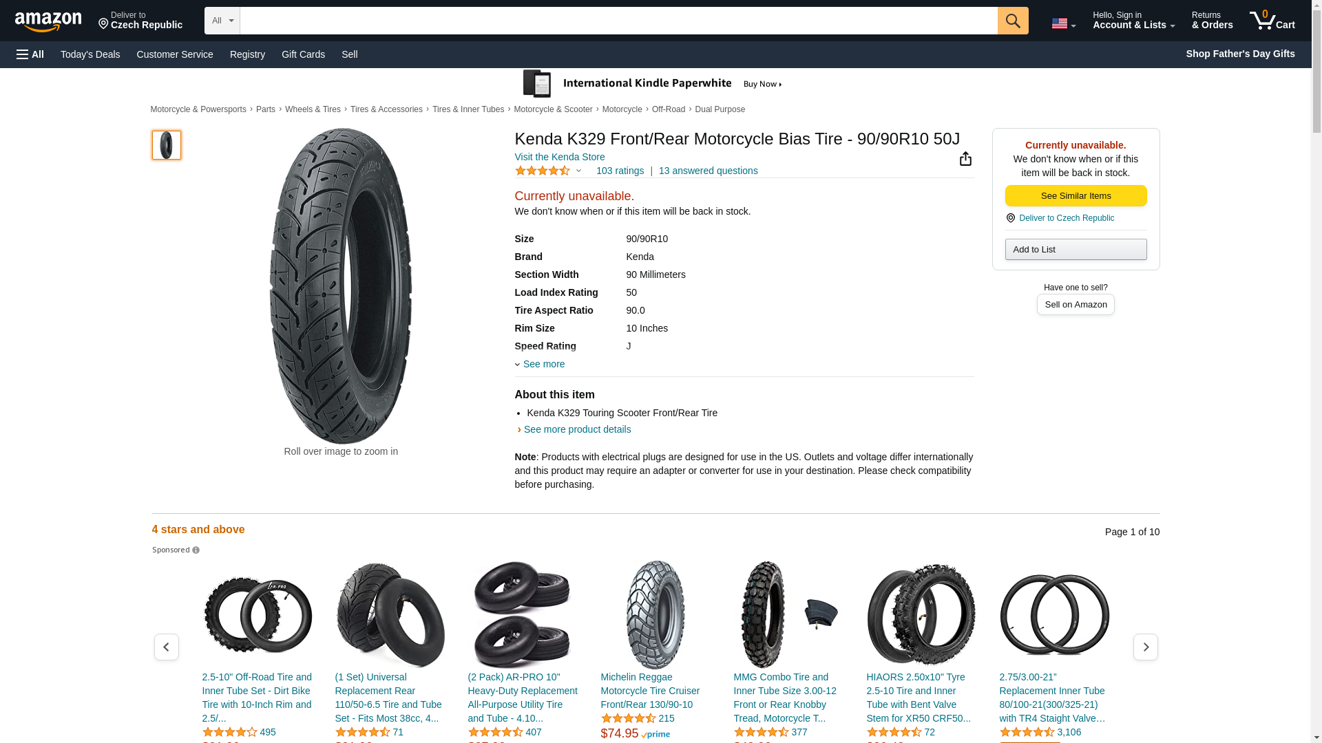 Kenda K329 Front/Rear Motorcycle Bias Tire - 90/90R10 50J