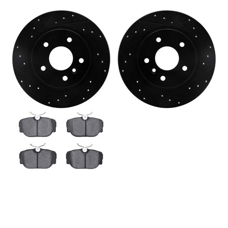 Dynamic Friction Company Rear Brake Rotors-Drilled and Slotted-Black with 5000 Advanced Brake Pads 8502-11000