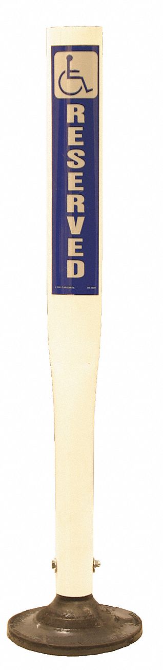 | Feature | <b>Price For:</b> Each <b>Delineator Color</b>: White/Blue <b>Delineator Height</b>: 36" <b>Retroreflective Collar</b>: No <b>Legend</b>: Reserved For Handicapped <b>Item</b>: Parking Lot Delineators <b>Channelizers and Delineators Product Group</b>: Parking Lot Delineators <b>Delineator Dia.</b>: 4" <b>Delineator Material</b>: Polymer Alloy <b>Country of Origin (subject to change)</b>: United States |
