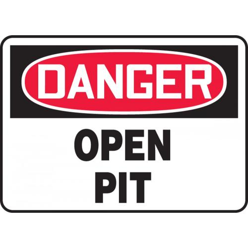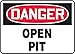 - Danger Open Pit safety sign printed in OSHA-compliant colors