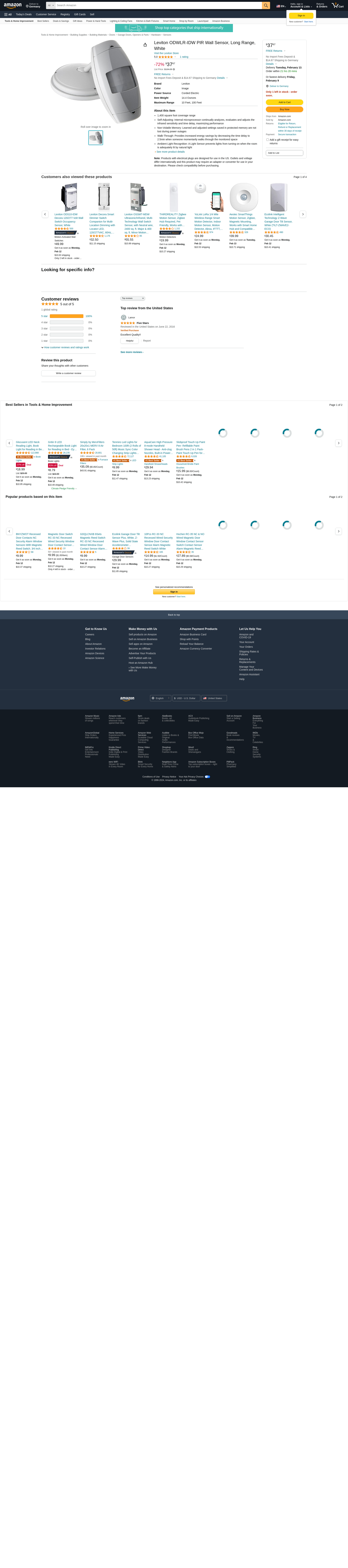 Leviton ODWLR-IDW PIR Wall Sensor, Long Range, White