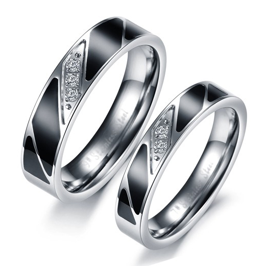 CET Domain SZ17-R087M-7 Titanium Steel Black Band Cubic Zirconia Couple Ring- Men-Size 7