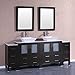 Bosconi AB230SQCM2S 84" Double Vanity Set with Square Vessel Sinks,Countertops, 2 Mirrors, and 3 Side Cabinets, Espresso/Carrara Marble