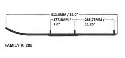 7/16in. Carbon steel host bar, with a flat top to prevent bar roll during aggressive cornering.<br> Carbides are made of yg13 tungsten that provides the ultimate tensile strength for extreme durability and hardness to reduce chipping and increase longevity.<br> The 90 degree angle of carbide into the pocket of our runners makes for very large cross sections compared to other designs.<br> 1in. Carbide segments allow for flex in ski without compromising carbide adhesion.<br> Engineered and test fitted to precisely fit your ski for easy install.<br> Chamfered ends to reduce catching when backing up and unloading.<br> Extended studs to allow for ski skins.<br> All necessary fastening nyloc nuts included.<br> All carbides and wearbars are finished in black rust preventative.<br> Many competitors use a design that is mounted very shallow in the host bar.<br> Our diamond shaped carbides are set deeper into the host bar giving it more surface contact adhesion. This will make it less susceptible to side impact failure from rocks or gravel.<br> RUNNER STYLE: Defender.<br> Features hardweld on contact area of host bar, giving it more depth to increase longevity..<br> Less damaging to concrete and asphalt surfaces..<br> SPI Code: 205