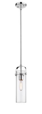 Innovations Lighting 423-1S-PC-G423-12CL Pilaster II Cylinder - 1 Light Stem Hung Pendant in Industrial Style-14.5 Inches Tall and 5 Inches Wide, Finish Color: Polished Chrome, Glass Color: Clear
