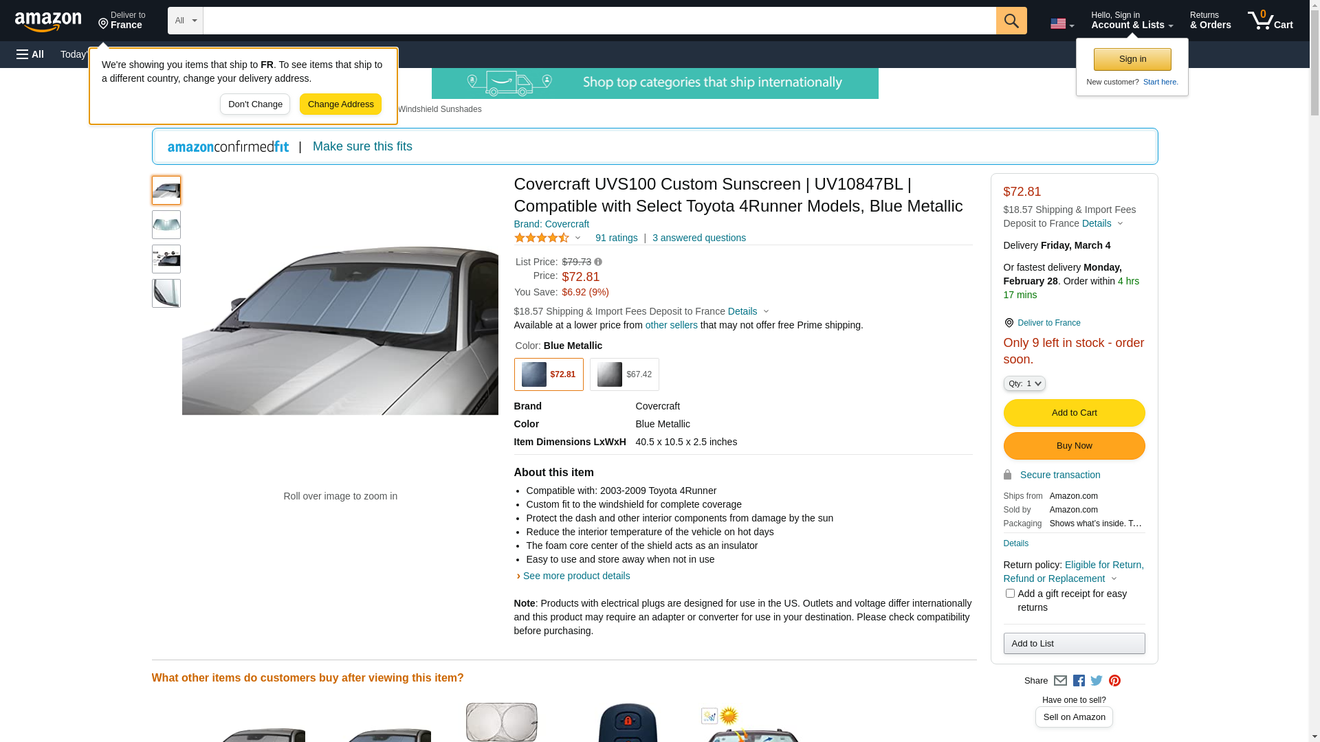 Covercraft UVS100 Custom Sunscreen | UV10847GD | Fits 2003-2009 Toyota 4Runner, Gold