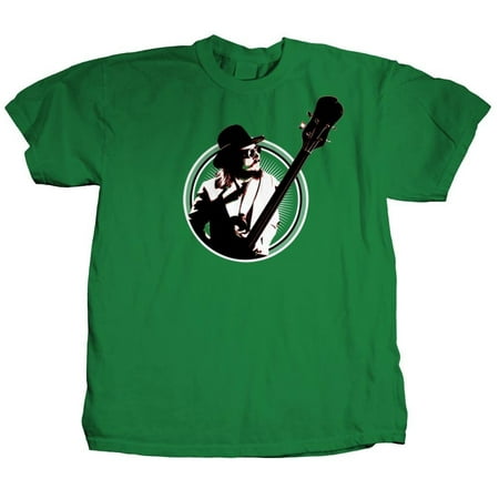 Les Claypool poses with a top hat and cane at the center of a bright way starburst logo graphic on the front of this green, 100% cotton t-shirt. An awesome tee for any fan of the world's greatest, wierdest bass player, from Primus and beyond.