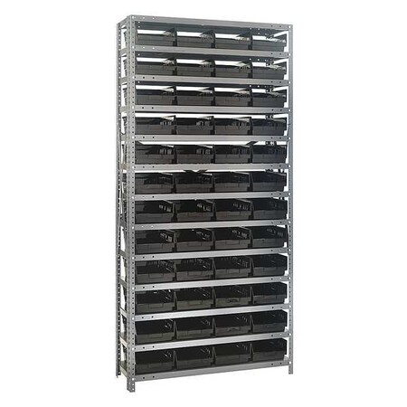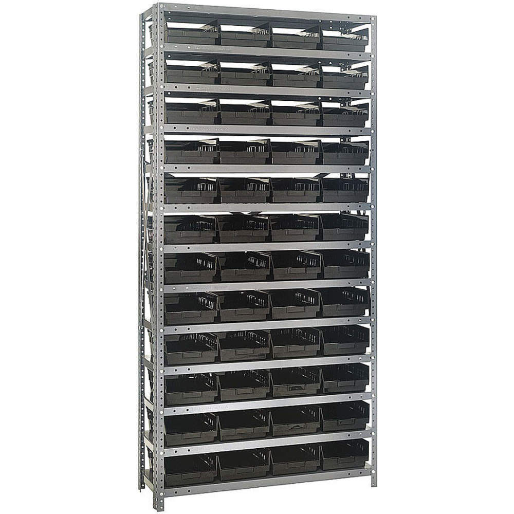 Quantum Storage Systems 1275-107BK Steel Shelving Unit with 4" Shelf Bins, 12" D x 36" W x 75" H, Black