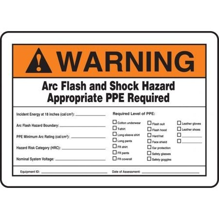 Accuform MELC364XT, 10" x 14" Dura-Plastic Sign:"Arc Flash and Shock Hazard Appropriate.", Pack of 8 pcs