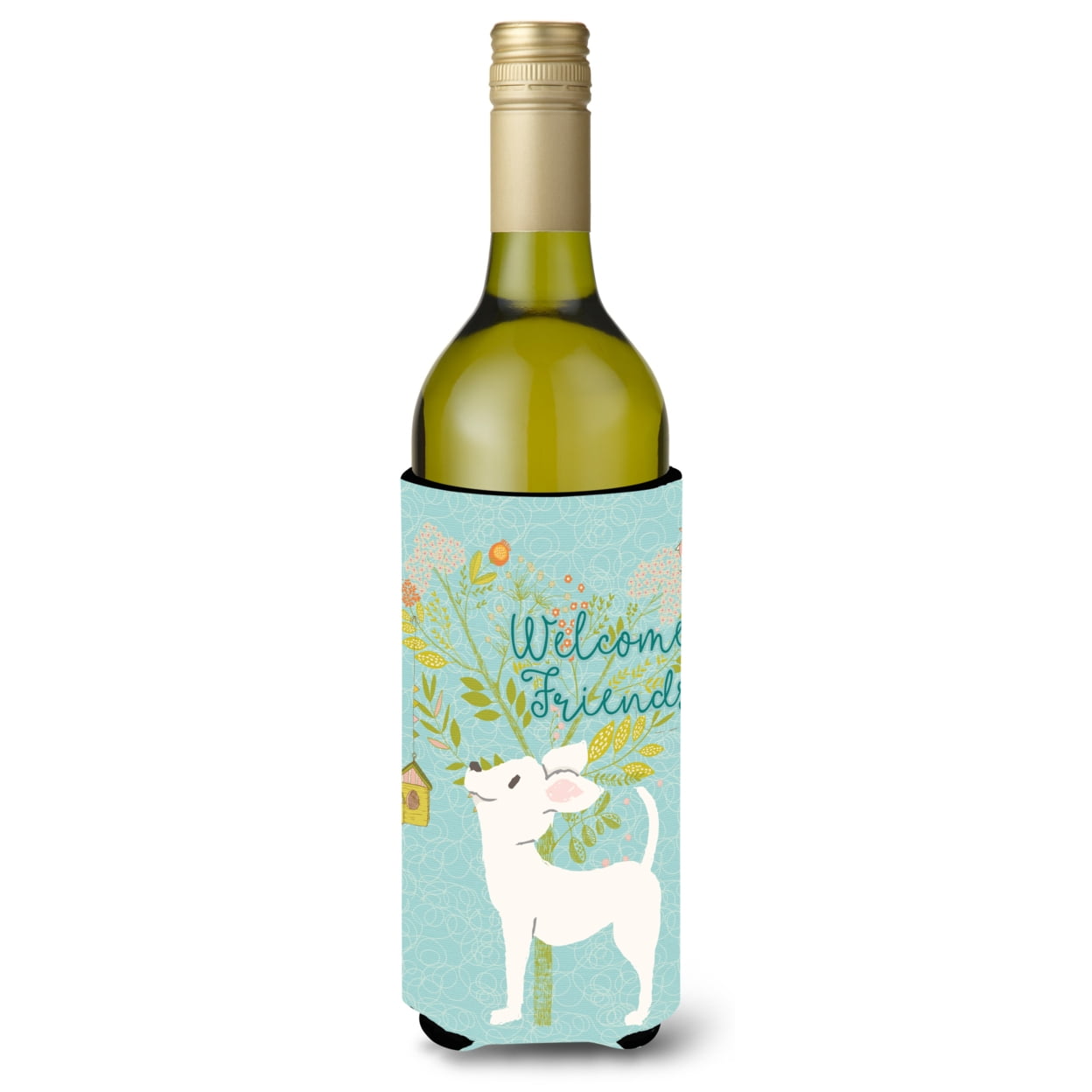 Carolines Treasures BB7629LITERK Welcome Friends White Chihuahua Wine Bottle Beverge Insulator Hugger