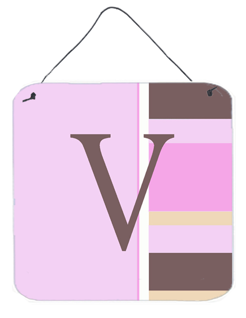 Carolines Treasures CJ1005-VDS66 Letter V Initial Monogram - Pink Stripes Aluminium Metal Wall or Door Hanging Prints