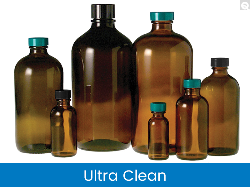 | Feature | Qorpak 4oz Amber Boston Round with attached 22-400 Black Phenolic Polyseal Cone Lined Cap, Ultra Clean - QOR |