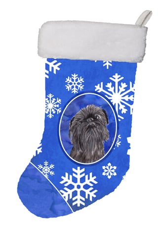 Brussels Griffon Winter Snowflakes Christmas Stocking- 11 x 8 In.