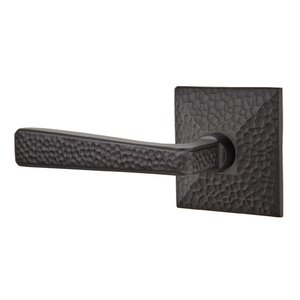 Arts & Crafts Door Hardware Collection - Left Handed Half Dummy Hammered Door Lever with Hammered Rose in Flat Black by Emtek - 5056HM.HALF.US19LH | MyKnobs