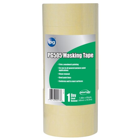 Intertape? PG505.123 Utility-Grade Masking Tape, 54.8 m L x 48 mm W, 5.8 mil THK, Natural Rubber Resin Adhesive, Crepe Paper Backing | Groves Industrial