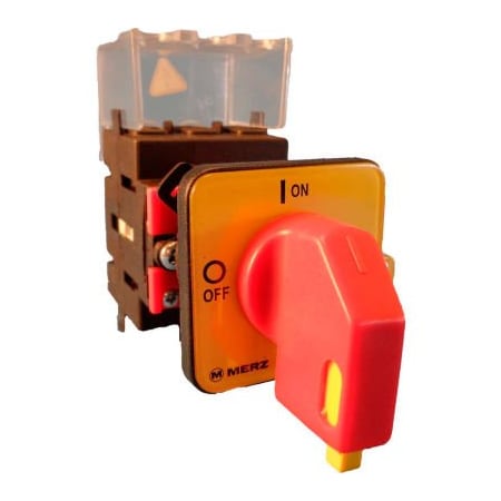 Springer Controls/MERZ ML1-025-CR2, 25A,3-Pole, Disconnect Switch, Red/Yellow, Center-Mount, Lockout