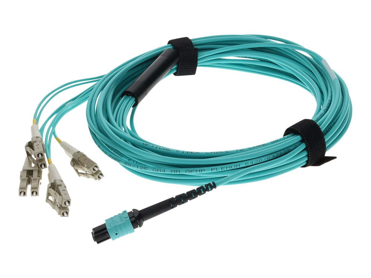 Proline 1m MPO (F)/8xLC (M) 8F Aqua OM4 Multiple Plenum-Rated Fanout Cable, Fiber Optic Cables, Cables, PRO-MPO-4LC1M5OM4P