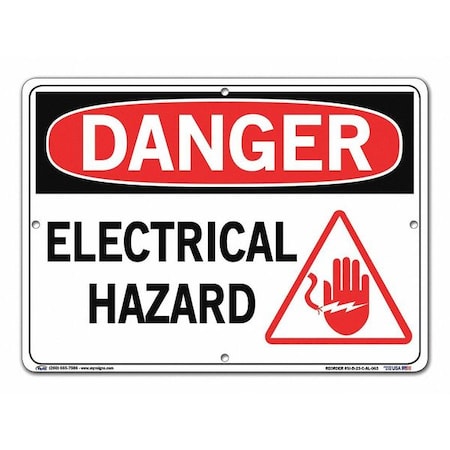 Vestil SI-D-23-C-AL-063 ELECTRICAL HAZARD Danger Sign, Aluminum, 0.063" Overall Size, 14.5" W x 10.5" H